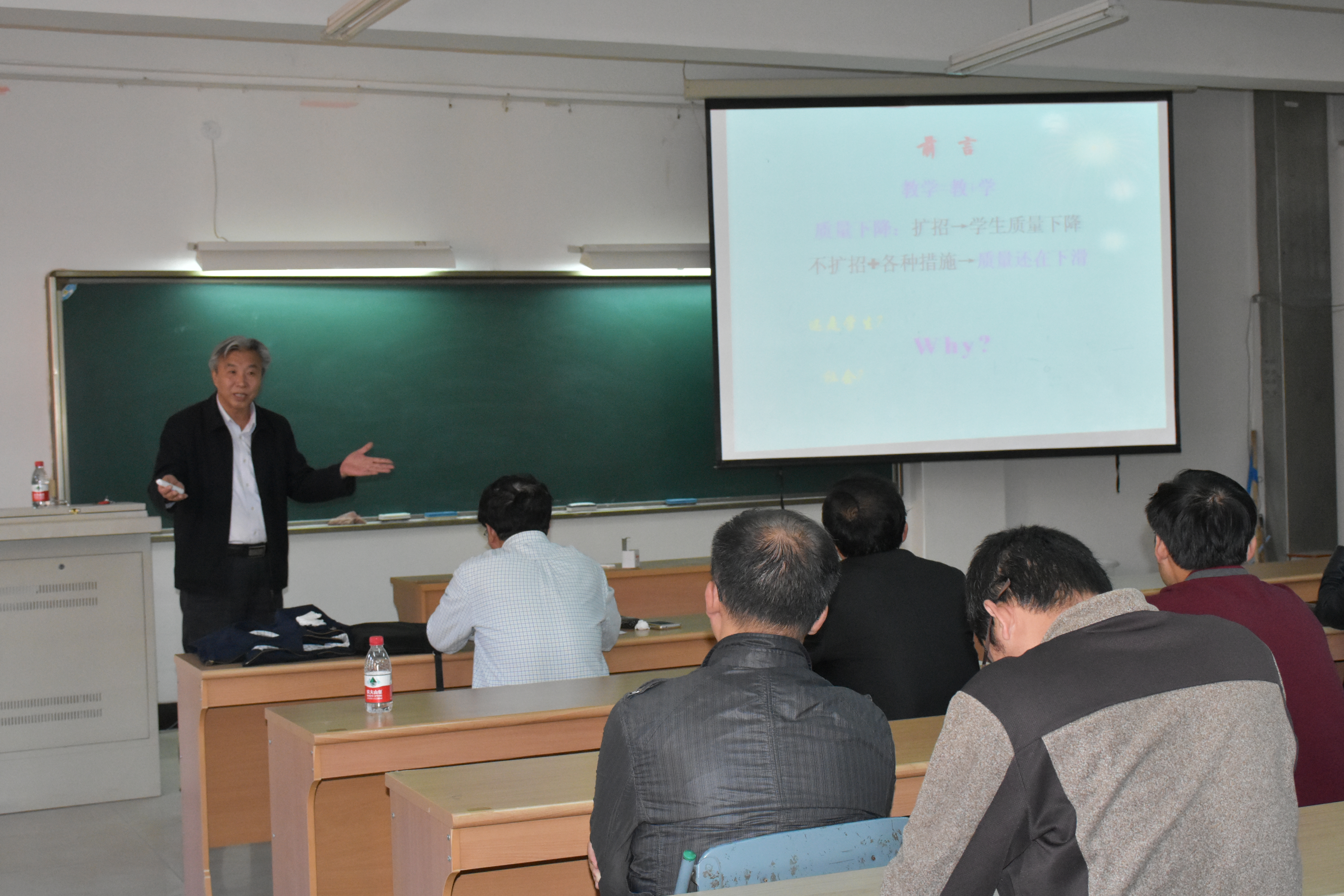 王明吉教授结合高校实际教学情况,展开本次报告,从高校教学存在的主要问题及原因、高校教风存在的主要问题、如何搞好教风建设、好教师的标准、如何提高教学水平和能力等方面深入分析了教风的含义、教风的构成以及教风建设的意义等问题。他认为好教师应该具备功底、功夫、特点及风格,并对教师们提出“传道、授业、解惑”、“授之以鱼,不如授之以渔”、“学高为师,身正为范”等寄语。王明吉教授的“教师、教学与教风”专题报告为学院在加强教风建设方面提供了思路,为各教师提高教学水平、形成良好教风提供了理论基础和实践经验。