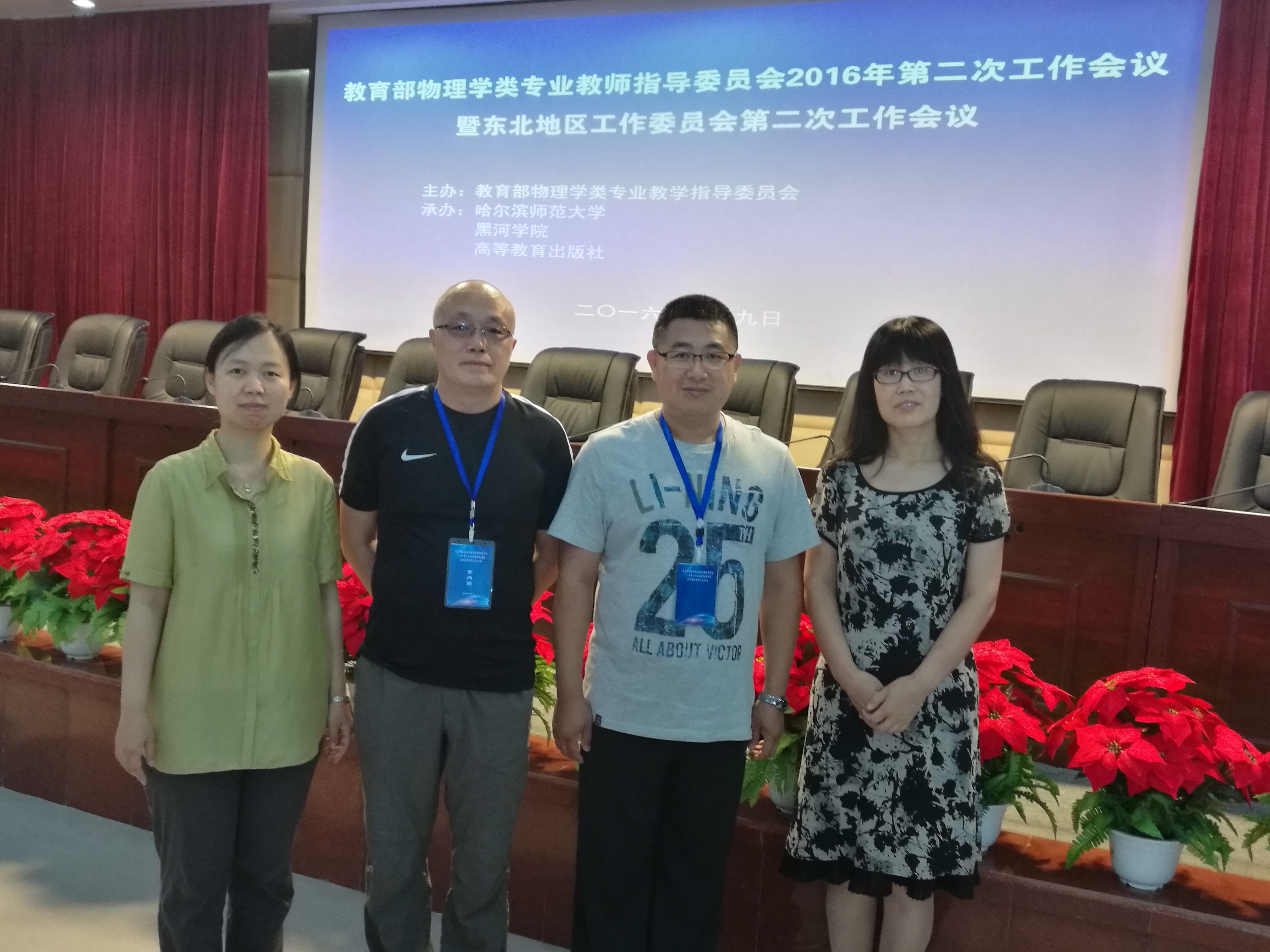 教育部物理学类专业教学指导委员会2016年第二次工作会议暨东北地区工作委员会第二次工作会议于7月9日在黑河学院召开。电子科学学院李贤丽教授、董向国副教授、秦显荣副教授、青年教师张雨参加了会议。