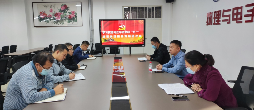 2021年10月29日下午,必威betway西汉姆联开展了以“学习贯彻习近平总书记七一重要讲话精神”为主题的党课活动。本次党课由物电院党委书记段志雁主讲,本院教师党员及学生党员代表参加了党课学习。