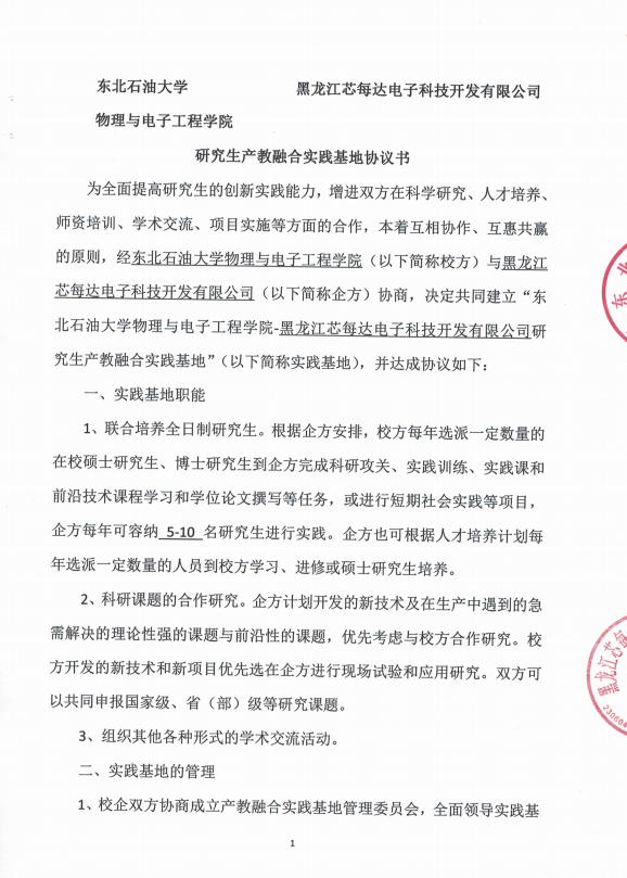 黑龙江芯每达电子科技开发有限公司总经理孟凡涛热情接待了我院一行,介绍了公司发展情况、技术产品、研发中心和服务领域。韩建院长介绍了我院研究生培养、学科方向和科研优势,希望通过校企合作加强研究生实践能力的培养,实现合作共赢,助力企业发展。座谈后双方签署了产教融合实践基地协议书,并进行基地挂牌。