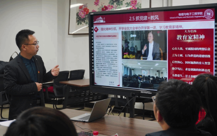 刘超从历史沿革、师资队伍、专业建设等方面介绍了必威概况,结合“党建+理论学习”“党建+队伍建设”“党建+学风教风”等方面工作汇报了物电院党建情况。