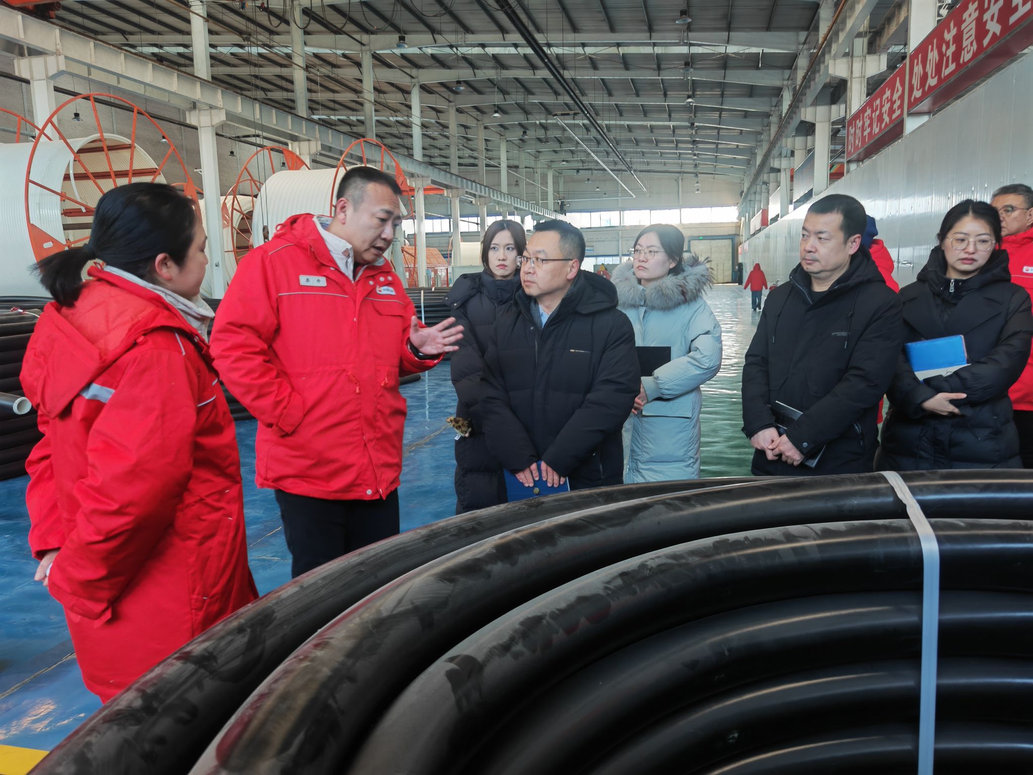 12月10日下午,院党委书记刘超带领物电院一行多人前往昆仑集团管业公司进行回访交流。在公司书记张勇和经理苏丹带领下参观了生产中心并开展了座谈,听取了管业公司的标杆党支部工作经验介绍。张勇书记介绍了公司的党建工作和生产经营目标及运营情况。双方就党建与业务融合进行了深入探讨,刘超书记对管业公司党建引领生产,各级党组织和党员发挥模范作用给予积极评价,双方就加强校企间的党建合作交流达成一致。