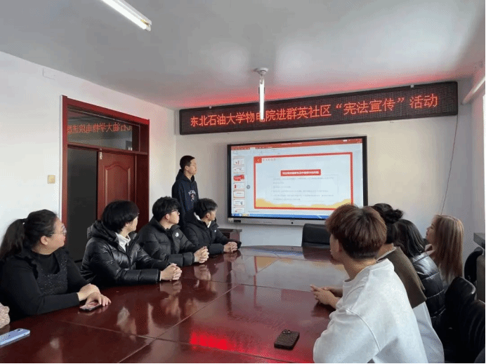 1月15日上午,研学团队前往依安镇泰安社区参观座谈。泰安社区是全国综合减灾示范社区,全国最美户外劳动者服务站点,全省先进基层党组织。在社区党支部书记、我校毕业生校友朱晓靓的介绍下,同学们参观了社区各工作室。在社区党员之家,院学生会主席张宇晗同学进行了宪法宣传,讲述了宪法在维护国家稳定和社会秩序中的重要作用和宪法对公民权益的保护,并结合社区工作讲述了宪法在教育、就业、医疗等方面的权益保障。