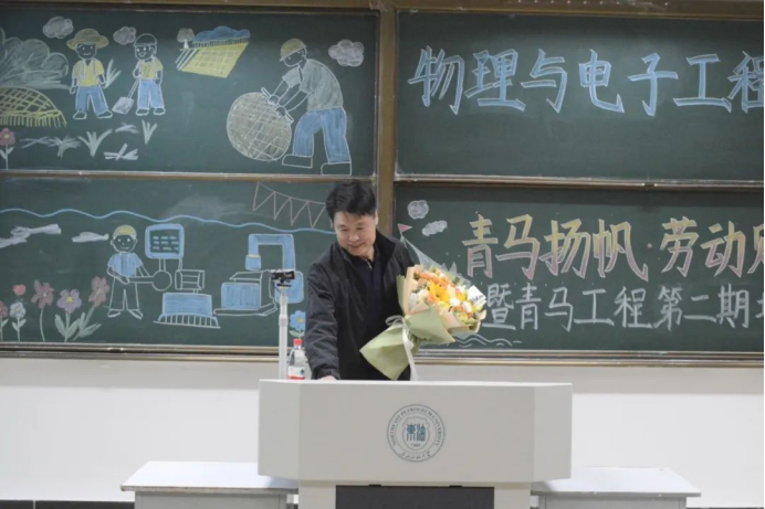 王东明对周义民老师不远辛劳到学院作报告表示感谢,他讲到:劳模精神、劳动精神和工匠精神,是时代发展的主潮流,永不过时。物电院师生搞的是弱电,画电路图,设计电路板,要向攀爬高压电线,勇闯技术创新高峰的周老师学习。“仰之弥高,钻之弥坚”“永不懈怠,厚积薄发”,他希望大家从周老师报告中汲取进步动力,激发创造热情和奉献精神,培养塑造严谨、执着、实干、创新的内在品质,“学铁人”脚踏实地的砥砺前行,开启人生奋斗之路。