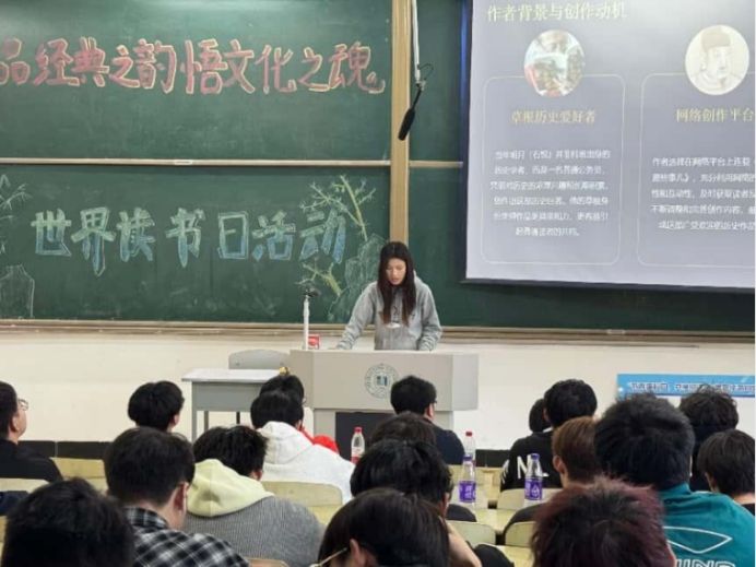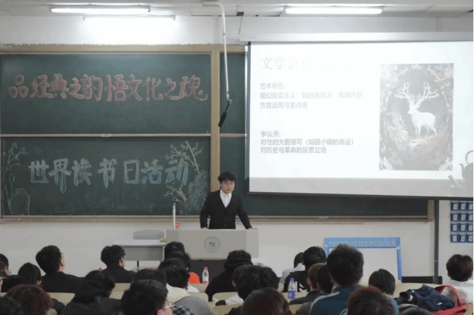 活动中,参与分享的九名同学讲述了自己的读书心得。其中,宋宇龙同学分享的《狂人日记》,让我们了解到了中国封建礼教“吃人”的本质,批判了中国封建礼教。樊曼泉同学分享的《明朝那些事》,仿佛让我们穿越回了那个时代,切身感受那个时代的政治斗争与军事战争。王龙飞同学讲述的《白鹿原》,让我们认识到这不仅是一部小说,更是一个民族的秘史,书中五十年的光阴浓缩成一声叹息,让我们在书中感受到民族的坚韧与挣扎。杜宇鹏同学分享的《红星照耀中国》,美国记者埃德加·斯诺以第一人称视角,真实记录了1936年中国西北革命根据地的红军和共产党人的生活与战斗,向世界揭开了中国共产党和红军的神秘面纱,让世界对中国革命有了全新认识。