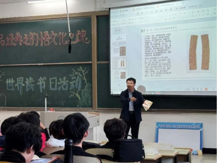党委副书记王东明参加活动并以“古人书信中的亲情”为题,分享了近期的读书心得 :最是无情帝王家,帝王杀伐果断的另一面,有着常人一样的温情:如刘邦的《手敕太子书》和李世民的《两度贴》。他鼓励同学们在旅游时多到博物馆参观,他讲述了湖北省博物馆的两千多年前“家信”木牍,战国时期秦国士兵黑夫和惊 那镌刻亲情的“家书”。