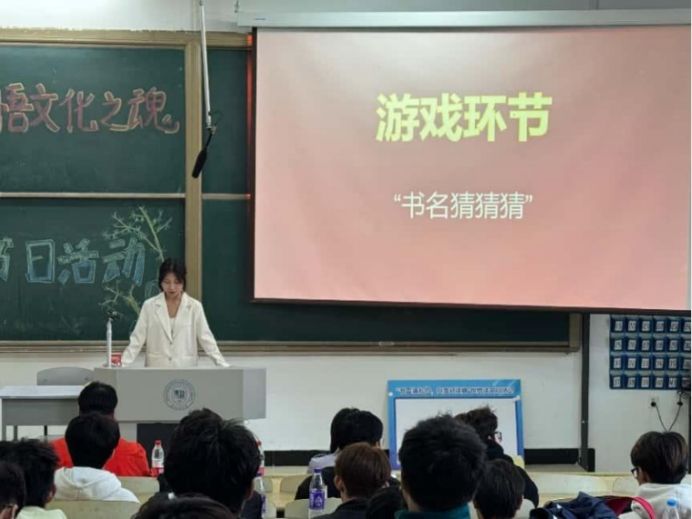 活动接近尾声,“书名猜猜猜”的游戏活动再一次将活动推向高潮,现场所有观众及工作人员踊跃参加游戏,抢答书名,并给正确猜出书名的同学奖励小奖品,提高活动整体趣味性与积极性。