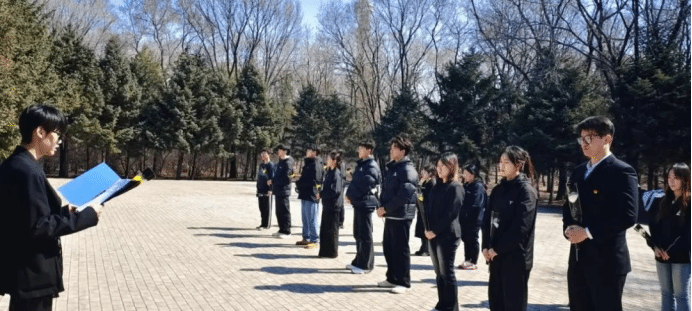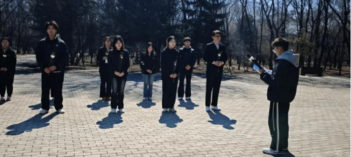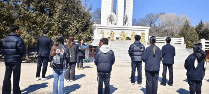 同学们低头肃立默哀,他们用无声的追思,向为国家独立和民族解放事业英勇献身的英烈们致以最深切的怀念。在烈士陵园,同学们进行了革命先烈事迹回顾活动,达斡尔族学生孙梓轩、吕东时,满族学生高禄琪,藏族学生白玛确珠深情缅怀讲述了赵一曼、黄继光等革命先烈的事迹,庄严肃穆的声音带着大家一同走进那段波澜壮阔的岁月,感受先烈们的坚定信念与无私奉献。