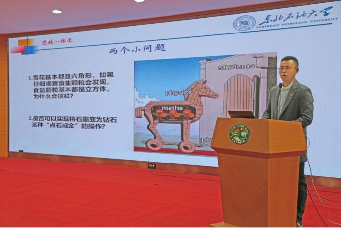 我院应用物理系吴刚副教授以《高压下的物理学新现象》为题,从“两个小问题”切入展开,讲解高压下碳元素单质的物理变化、高压下的超导体特性等有趣的物理知识。