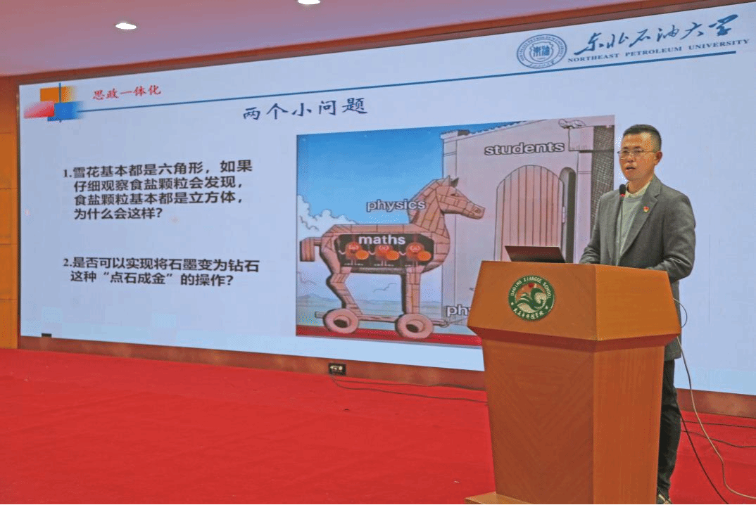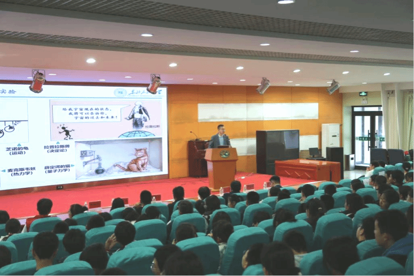我院应用物理系吴刚副教授以《高压下的物理学新现象》为题,从“两个小问题”切入展开,讲解高压下碳元素单质的物理变化、高压下的超导体特性等有趣的物理知识。