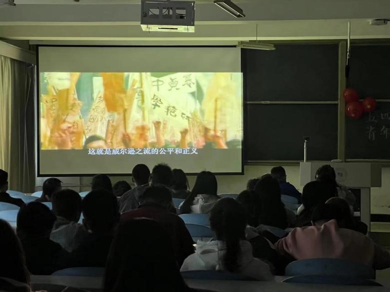 学生集体观看《我的1919》影片,感受五四运动包涵的历史底蕴和爱国情怀。观影结束后,进行“五四运动”主题知识竞答比赛,学生在比赛中回顾和学习“五四”运动的来历、“五四”精神和“五四”运动杰出代表等理论知识。