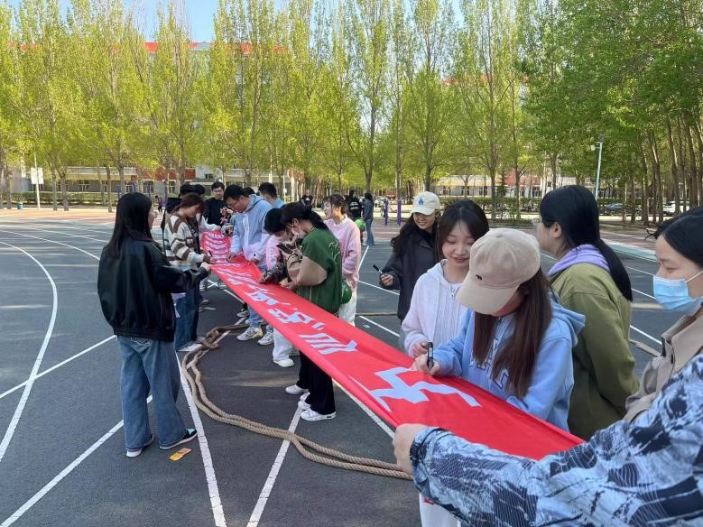 愉快而激烈的游戏结束后,本次活动便迎来尾声,在最终的“祝福祖国,寄语未来”环节,我院研究生在条幅上写祝福语并集体合影,留下青春纪念。