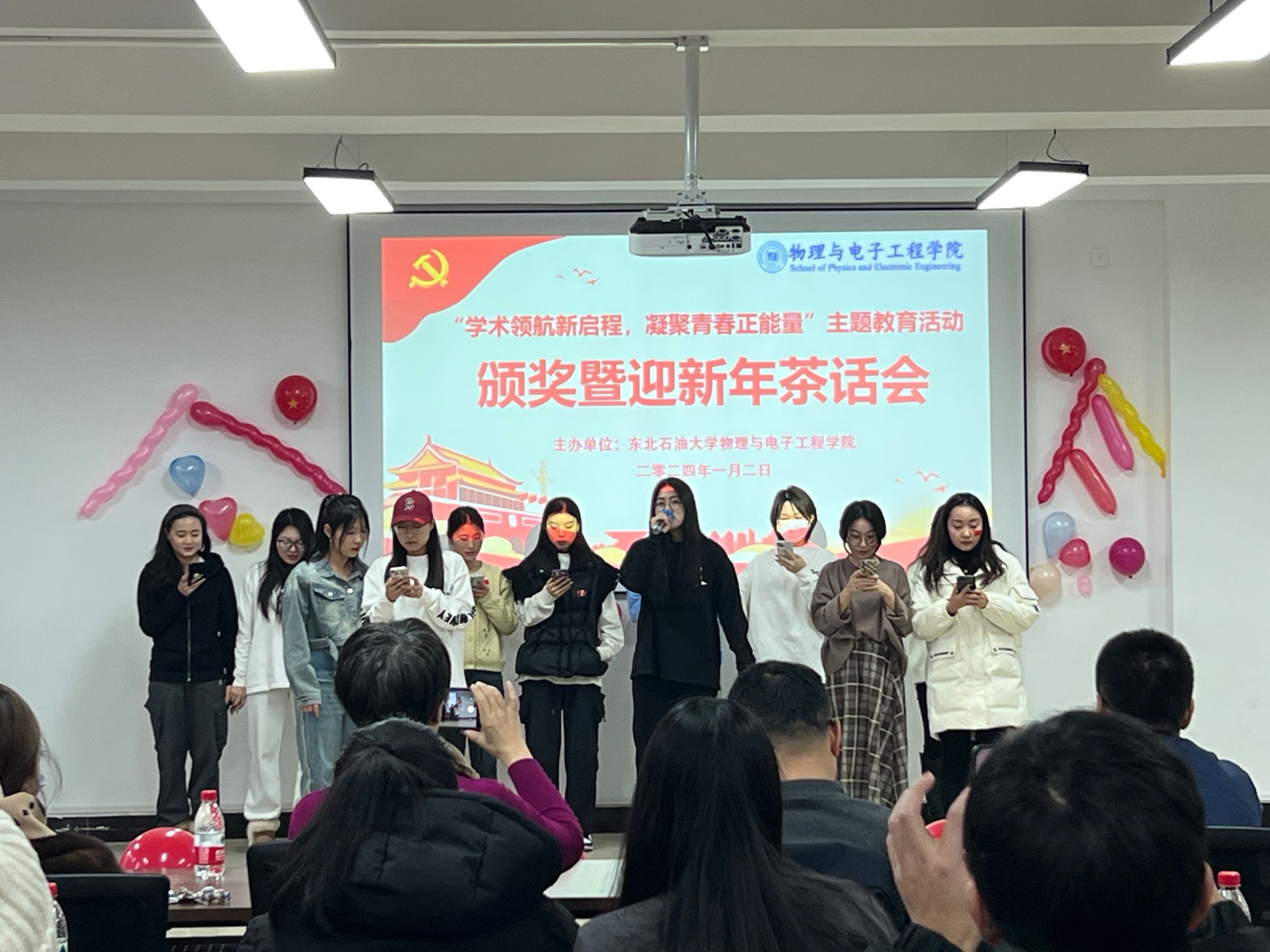 最后,我院于2024年1月2日开展了“学术领航新启程,凝聚青春正能量”主题教育活动颁奖暨迎新年茶话会,参会领导有:党委书记刘超、院长韩建、党委副书记王东明、副院长罗伟、副院长刘强。根据积分排序,本次主题教育活动共设奖励三个等级,在颁奖会上,我院领导为获奖同学代表颁发了荣誉证书,极大地鼓励了研究生的活动热情。在迎新年茶话会上,同学们通过歌唱、舞蹈、游戏等丰富多彩的表演形式给大家带来了一场视听盛宴,整场演出气氛热烈,掌声不断,为庆祝新年的到来增添了浓厚的氛围。