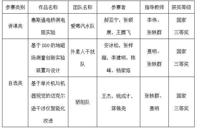 必威西汉姆联通过全校范围内的校级物理实验竞赛预赛选拔,必威betway西汉姆联大学物理实验中心选拔5支队伍参赛,经过初赛和决赛,获得三等奖三项,同时我校获得优秀组织奖。讲课赛道,爱喝汽水队的作品“惠斯通电桥测电阻实验”获国家三等奖;自选赛道,外星人干扰队的作品“基于DSO的地磁场测量创新实验装置与设计”荣获国家三等奖,骄阳队的作品“基于单片机与机器视觉的迈克尔逊干涉仪智能化改进”荣获国家三等奖。