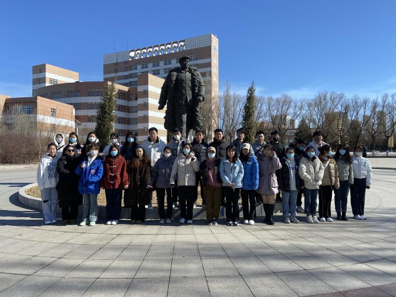 首先,辅导员张雪莹带领各班参观了屹立在校园的王进喜雕像,铁人精神是以王进喜同志为代表的老一代石油工人创造的宝贵精神财富。无论风吹、日晒还是雪淋,雕像仍然屹立在那,就像当初的王进喜同志不管天气恶劣还是身体不适都毅然决然为石油事业奋斗终身。同学们参观完铁人雕像后合影留恋。