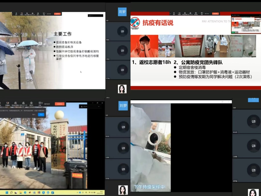 同学们通过PPT、视频等形式热情介绍自己在疫情期间的志愿服务工作,并分享了自己在疫情期间的经历与体会等,通过展示在抗击疫情中的照片、证书等来述说疫情间的温情小故事,展示当代青年学生的责任与担当。