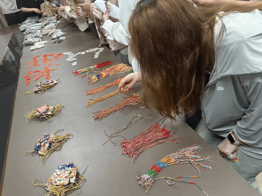 手工制作环节趣味盎然。本次活动精心准备了丰富多样的材料,包括五颜六色的布料、丝线、五彩绳、香料、卡片等。选手们热情高涨地投入到手工制作中,缝制过程中选手们相互交流、分享技巧、互帮互助、细心缝合,一个个造型独特、香气四溢的香囊逐渐成型,他们专注的神情和用心的创作让整个现场充满了温馨与欢乐。