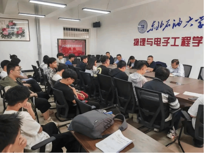 14日下午,院领导班子成员与三十余名领取毕业证书后的毕业生同学在236会议室开展座谈交流,同学们就教学实验,课程设置,学生活动等多个方面提出了建议和意见。院党委书记刘超,院长韩建等领导班子成员一一作出回应并记录。学院领导对大家表示感谢,表示从学校到学院都在逐步改善办学条件,会认真思考大家给学院的“毕业留言”,也祝福24届同学毕业后快速成长,不断进步。同时,也欢迎同学们常回东油看看,多关心物电院发展。